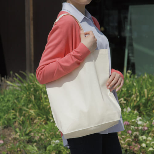 シーチング素材の中でもやや厚手の生地を使用した、販促・ノベルティ向けエコバッグです。