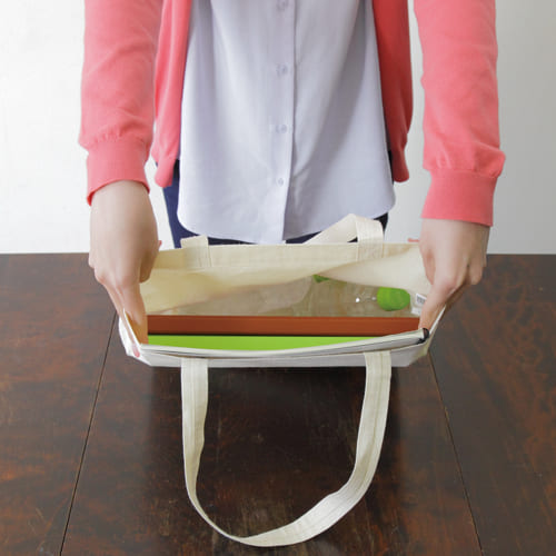 大きめサイズに底マチ付きのため収納力が高く、日常使いのトートバッグとしても活躍します。