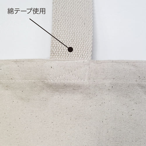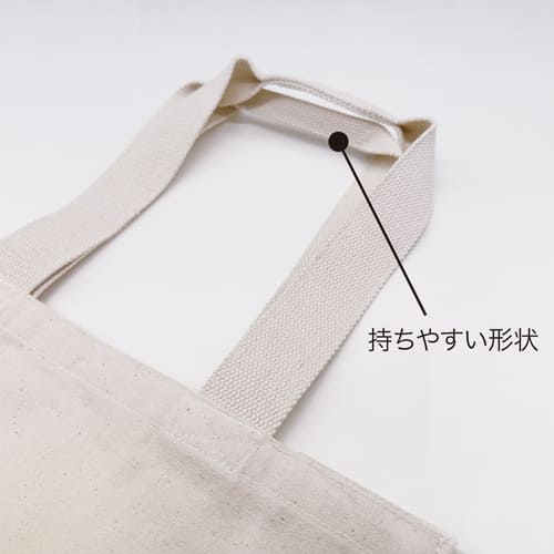 持ち手には丈夫な綿テープを使用しており、肩掛けもしやすく実用性に優れています。