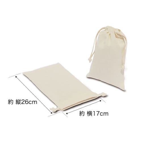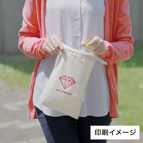 小物入れやギフト包装、イベント配布用など多用途に使える、コストパフォーマンスに優れたコットン巾着となっております。