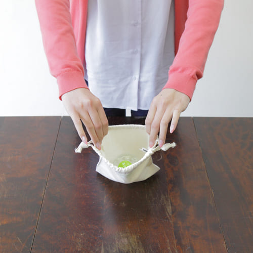 ナチュラルな風合いが魅力のコットン巾着は、500mlペットボトルが収まる使い勝手の良いサイズ感。