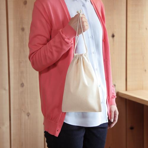 ナチュラルな風合いが魅力で、オリジナルプリントを施した販促・ノベルティグッズとしておすすめのコットン巾着です。