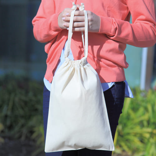 コットン巾着は、ワイシャツ程度の薄手素材を使用した軽やかで扱いやすい巾着袋です。