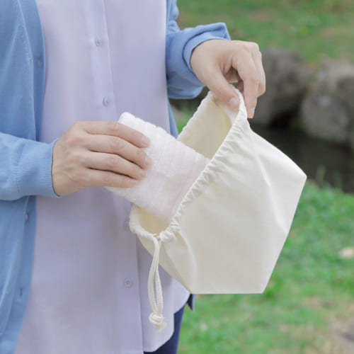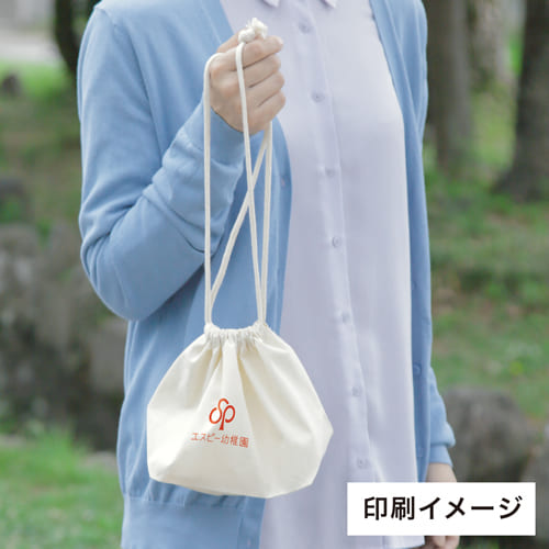 コットンランチ巾着は、薄手で扱いやすいコットン素材を使用した販促・ノベルティ向けの巾着袋です。