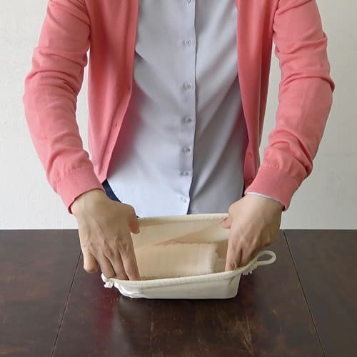 一般的なワイシャツ程度の軽やかな生地感で、持ち運びもかさばらず日常使いにも最適。