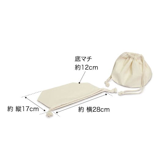 お弁当や小物収納に便利なコンパクトサイズの巾着です。