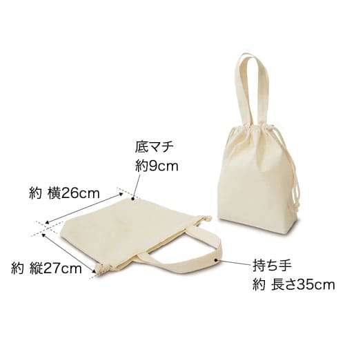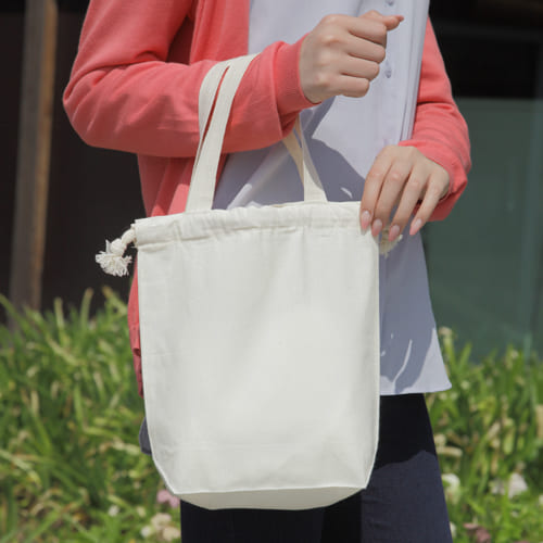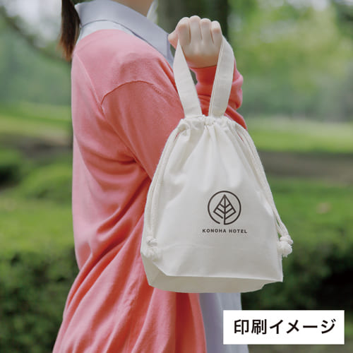 持ち手付きで便利なコットンエコ巾着!