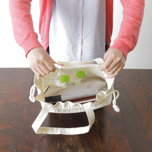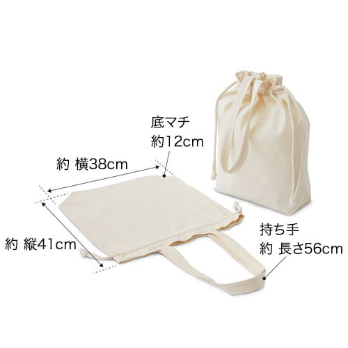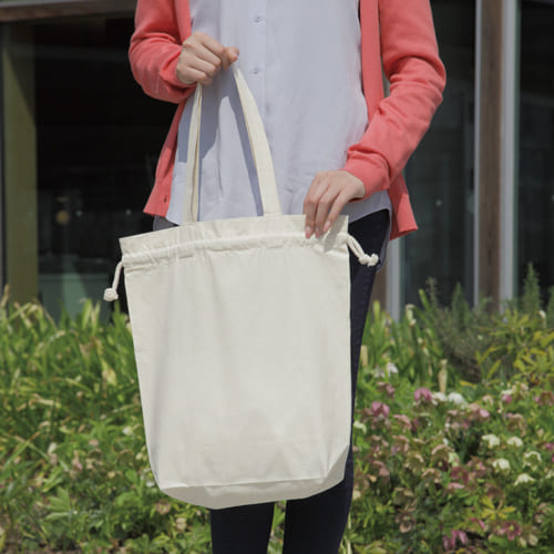 薄手コットン素材を使用した、軽くて扱いやすい持ち手付き巾着エコバッグ。