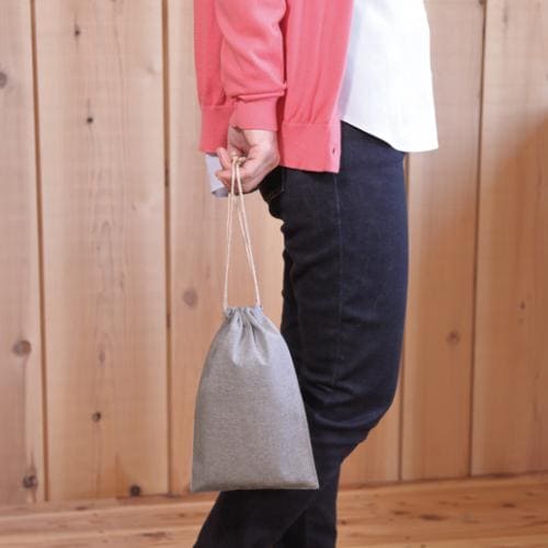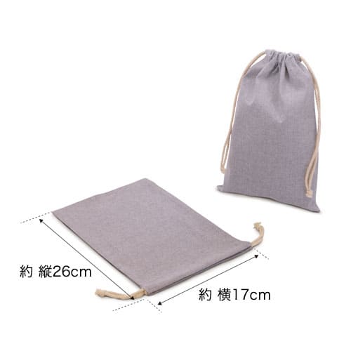 シンプルなグレーカラーで名入れもしやすく、企業PRやオリジナルグッズ制作におすすめの巾着となっております。