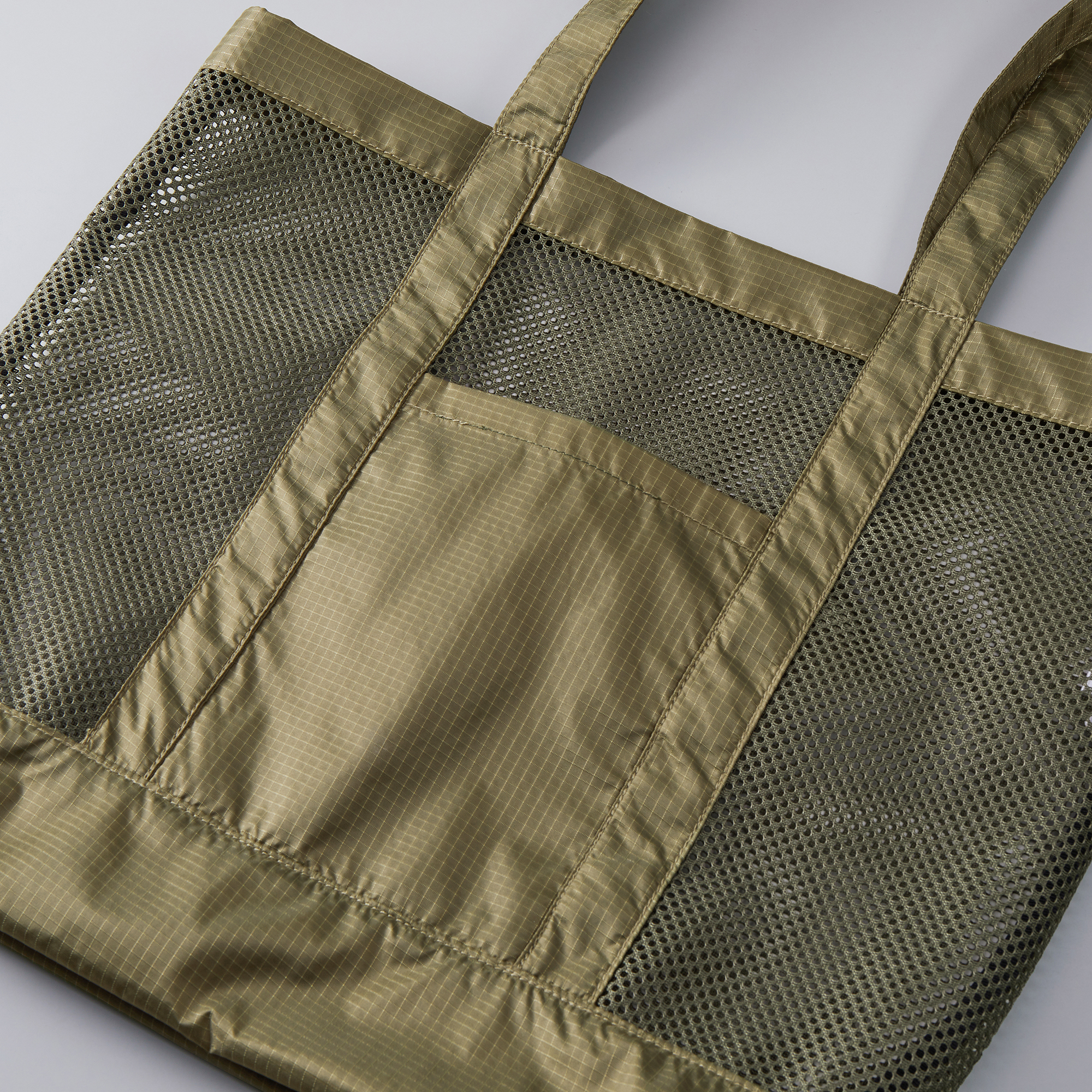 リップストップ生地と、メッシュの組み合わせ、肩掛けしやすい長さのハンドルがデイリーユースにぴったりです。通気性がいいので、普段づかいにはもちろん、ジムやレジャー用にもおすすめです。