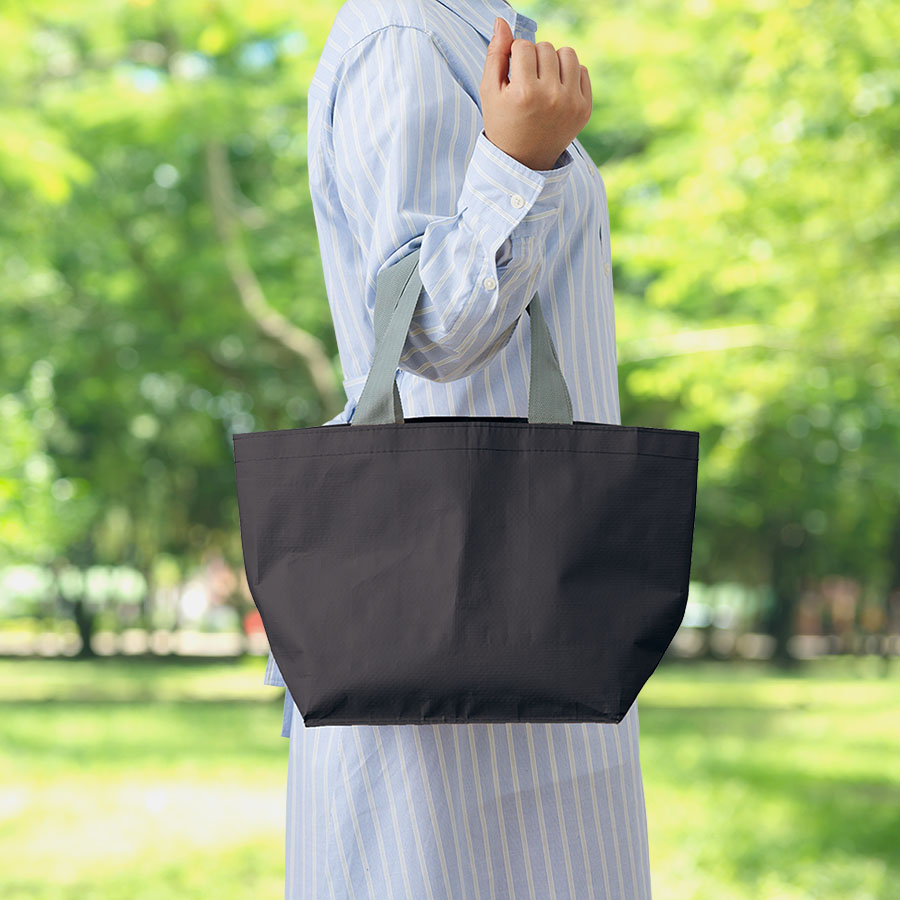 軽いレジャーシート素材で作られた持ち運びに便利なトートバッグです。舟形の大きめのマチは沢山荷物が入るため、アウトドアなど、荷物が多いときに安心してご使用いただけます。濡れにくい素材で雨の日にも大活躍!ランドリーバッグにもおすすめです。