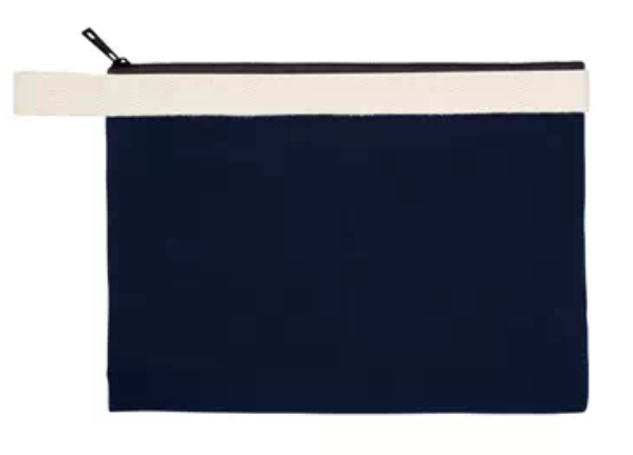 バイカラーのストラップベルトがアクセント、ステーショナリーも入れやすいフラットタイプのポーチ!