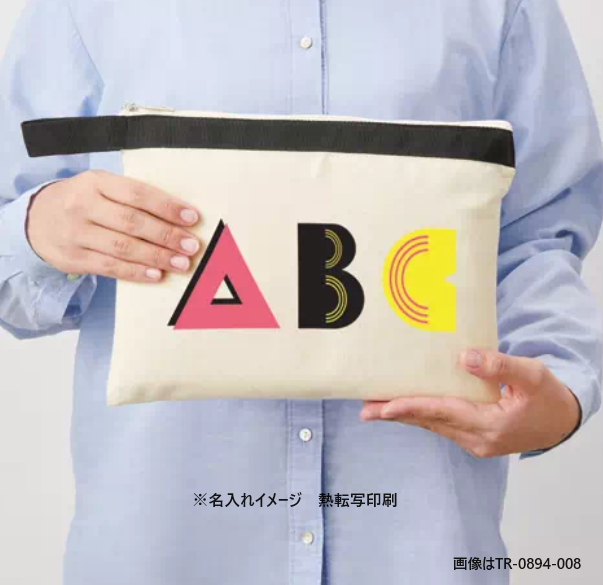 シンプルなポーチとなっており、お好きなデザインをプリントしやすい商品です。