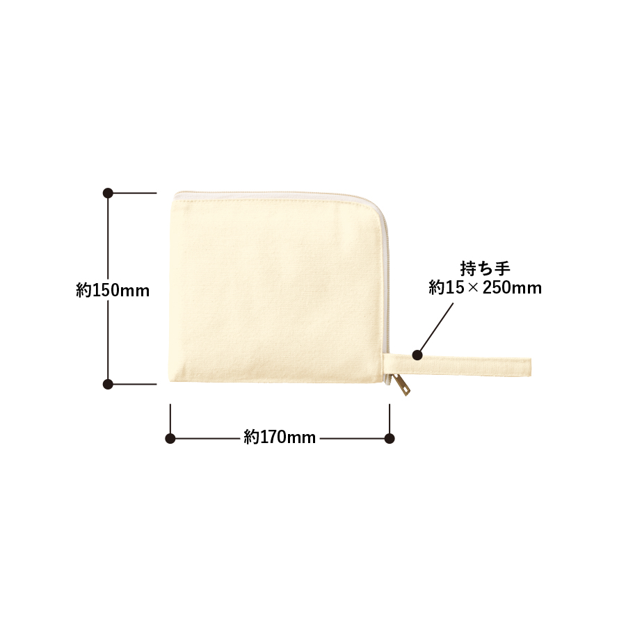 キャンバスL字ファスナーフラットポーチ(S) ナチュラル