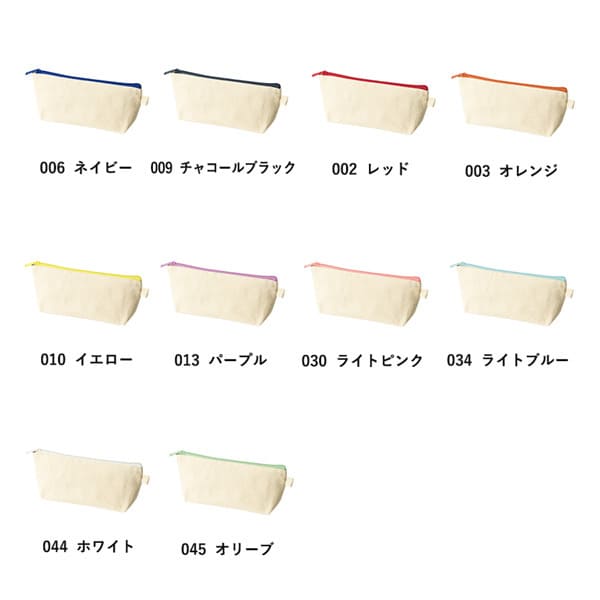 10色のカラーファスナーがアクセントになったロングタイプの舟形ポーチです。