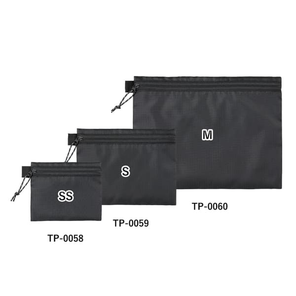 軽量で破れにくいリップストップ生地を使用したフラットタイプのポーチです。