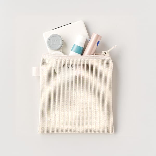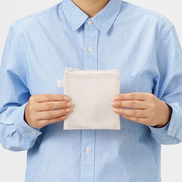 中身が見える透け感メッシュ素材を使用した、コンパクトなフラットポーチ!