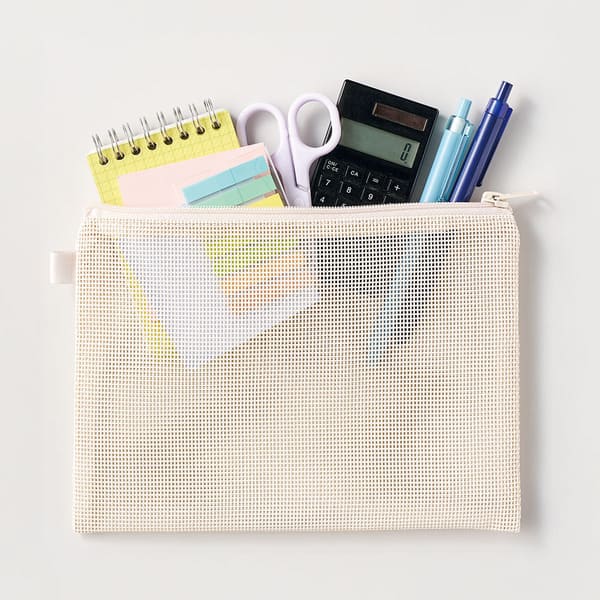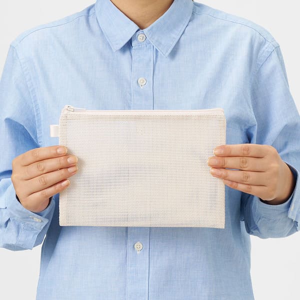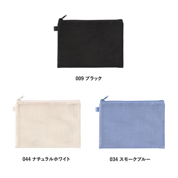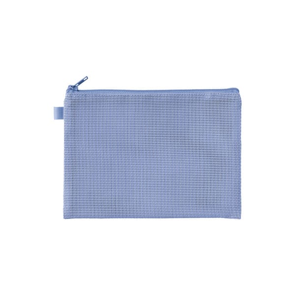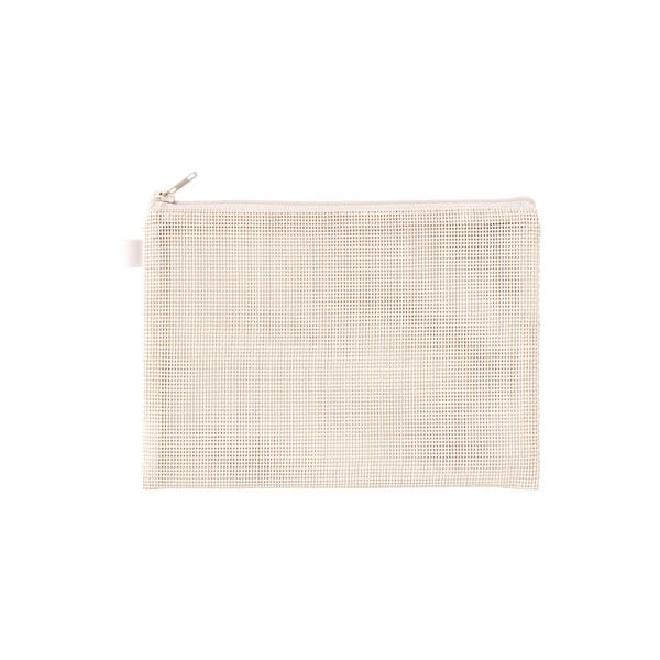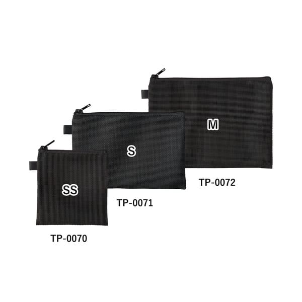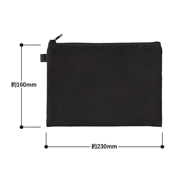 中身がひと目で確認できる全面メッシュ仕様のフラットポーチです。