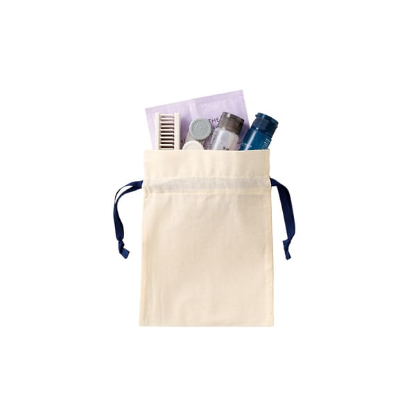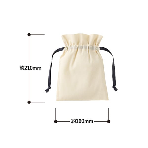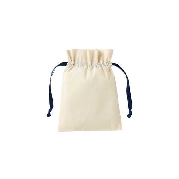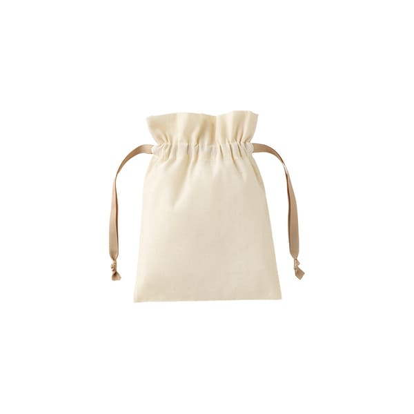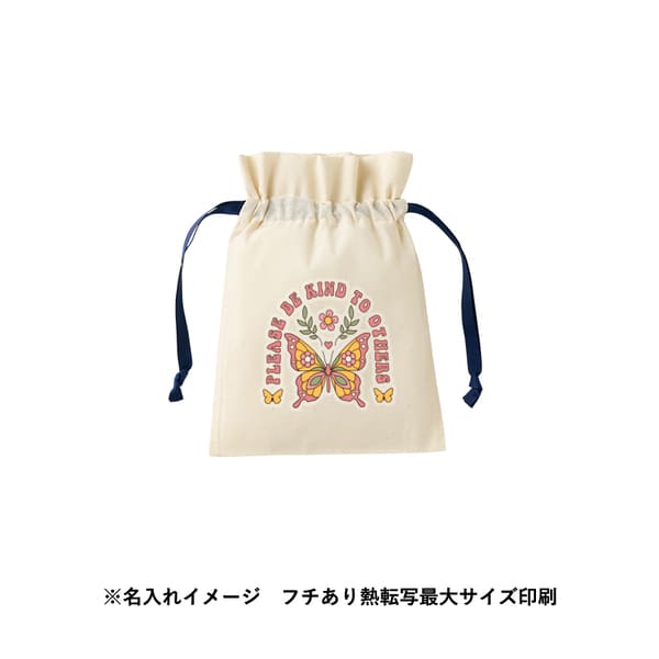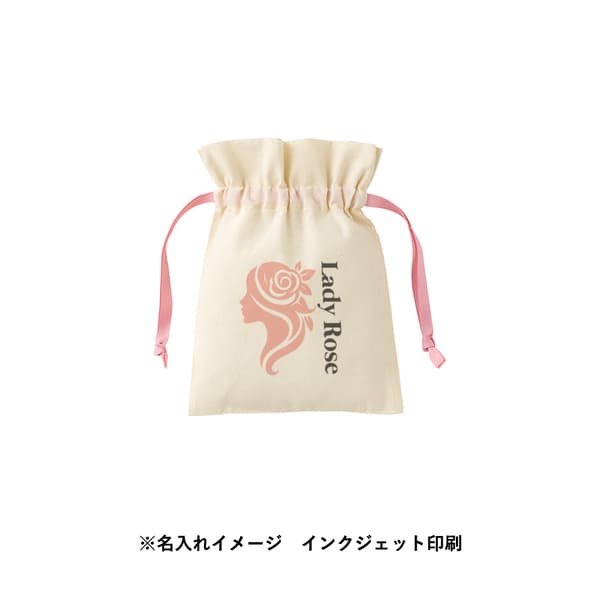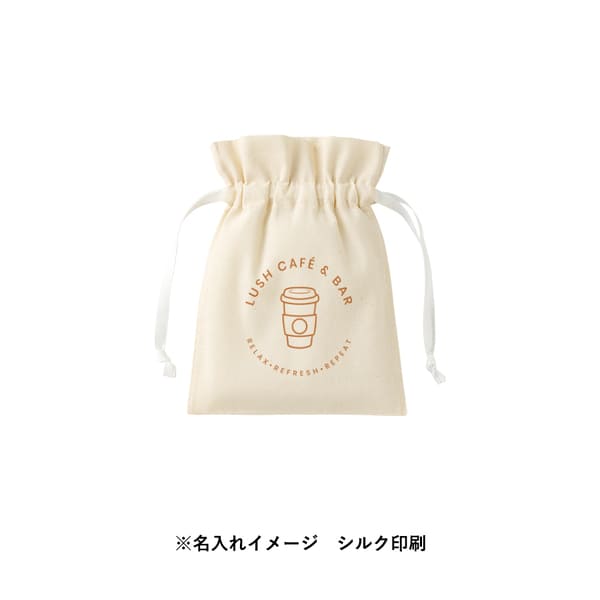 ナチュラルなコットン素材で名入れデザインが映え、オリジナル巾着やノベルティ制作に最適。