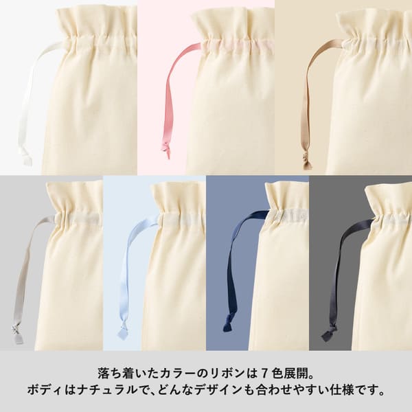 7色から選べるカラーリボンがアクセントのコットン巾着!