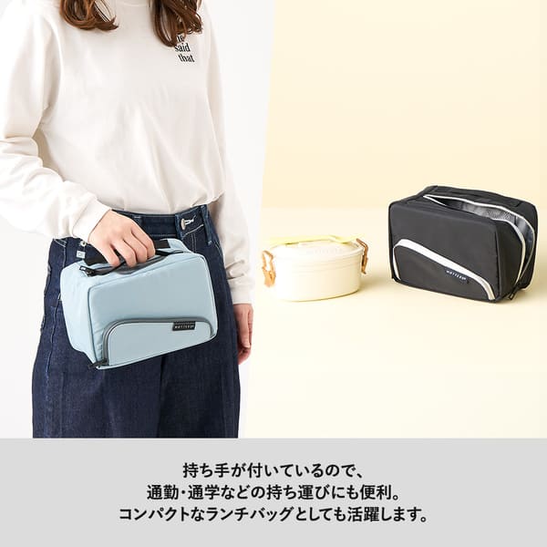 持ち運びに便利なハンドル付きで、ランチタイムやアウトドアにも最適です。