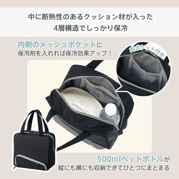 バッグ内部は断熱クッションを含む4層構造で、しっかり保冷します。