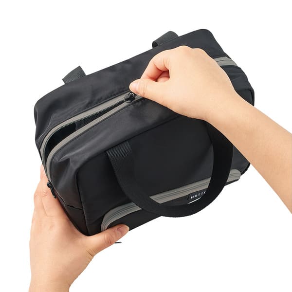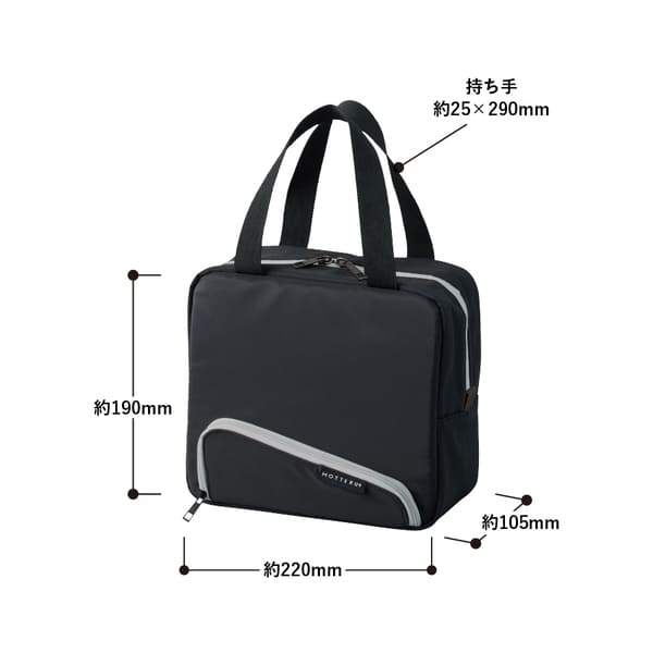 お弁当と500mlペットボトルをすっきり収納でき、縦・横どちらにも対応します。
