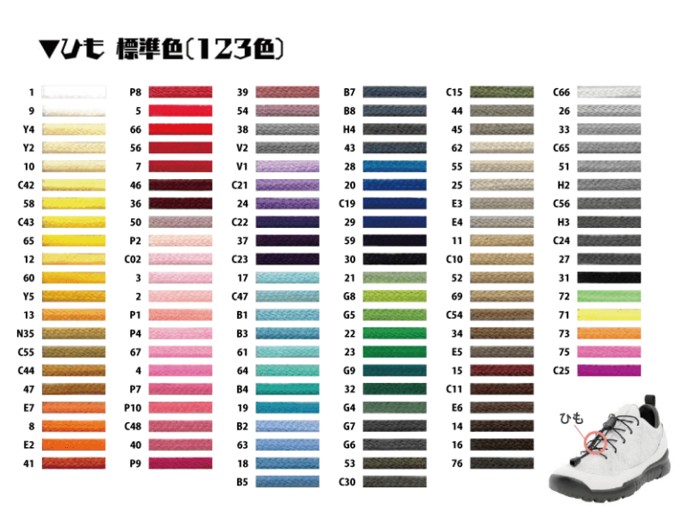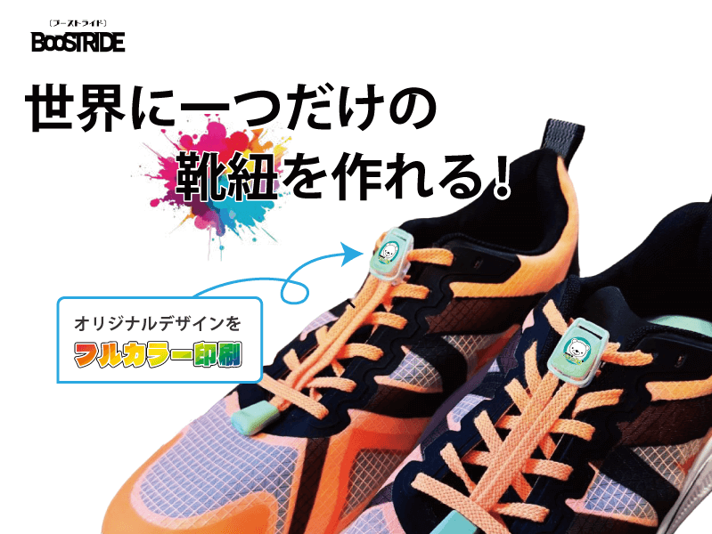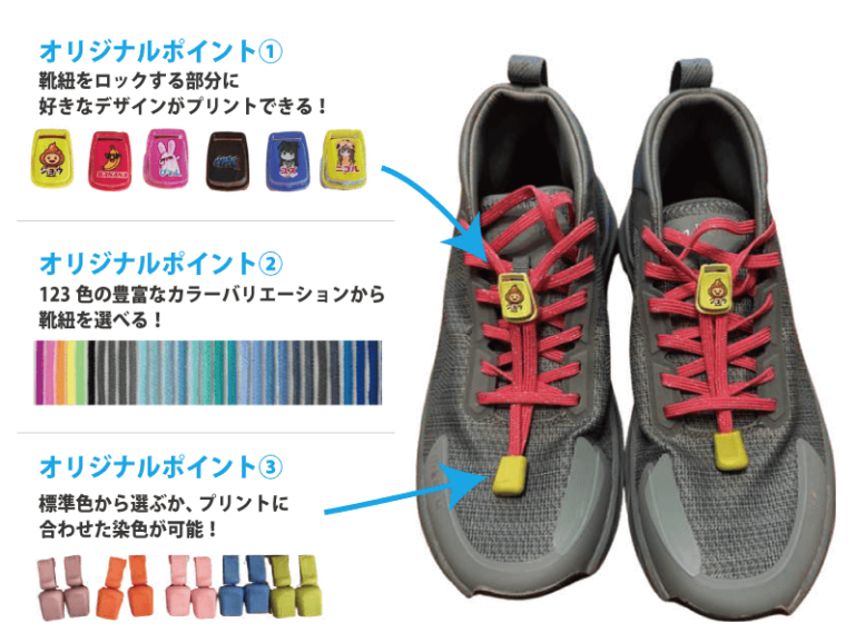 靴紐は豊富な123色展開で、マラソンやスポーツ大会の記念品、販促ノベルティ、ファングッズ制作にも最適です。