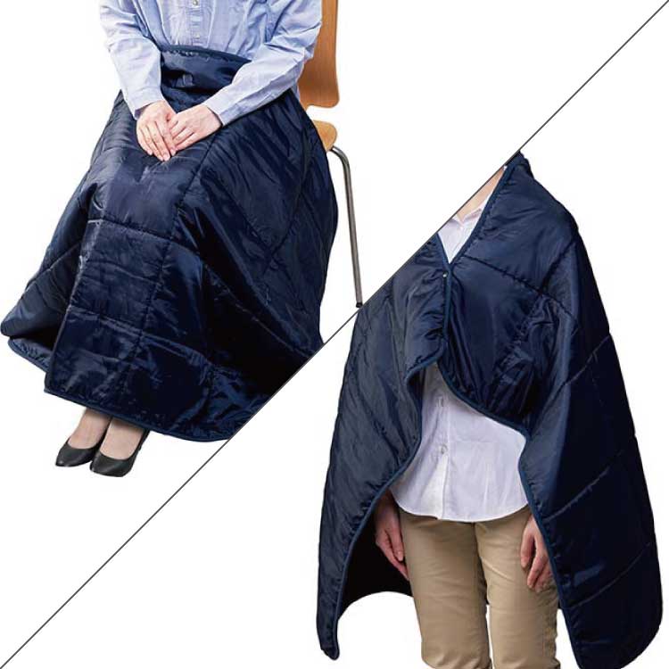 フロントにあるボタンを留めることで肩掛け・腰巻にもでき、アウトドアシーンやスポーツ観戦などで重宝するアイテムです。