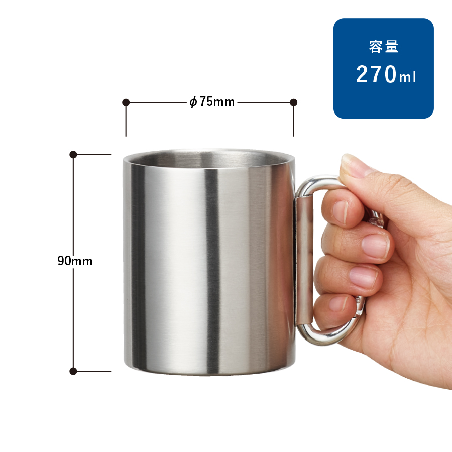 持ち歩きしやすいカラビナハンドルのステンレスマグ