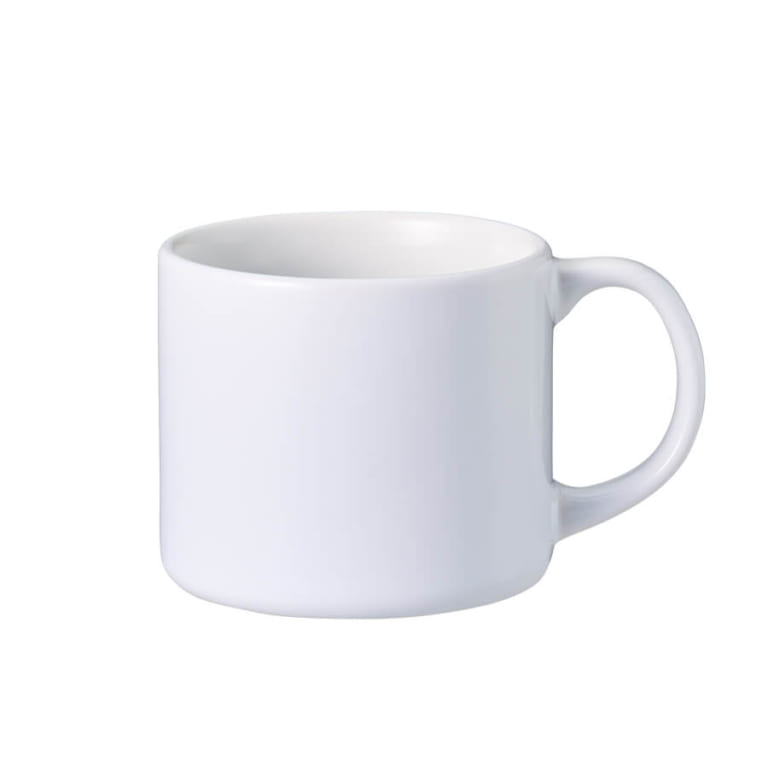 丸みのあるフォルムが特徴のショートワイドタイプの陶器マグカップです。