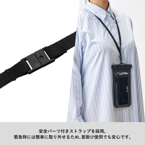 安全パーツ付きストラップで、万が一の際も簡単に取り外せて安心。