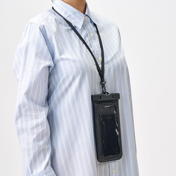 ポーチに入れたままスマートフォンの操作や通話が可能で、海・プール・フェス・ウィンタースポーツなど幅広いシーンに活躍。