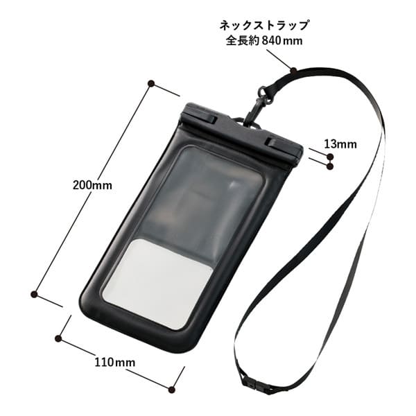 イベント物販やノベルティ、レジャー施設の備品としてもおすすめの防水スマホポーチです。