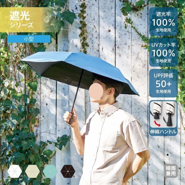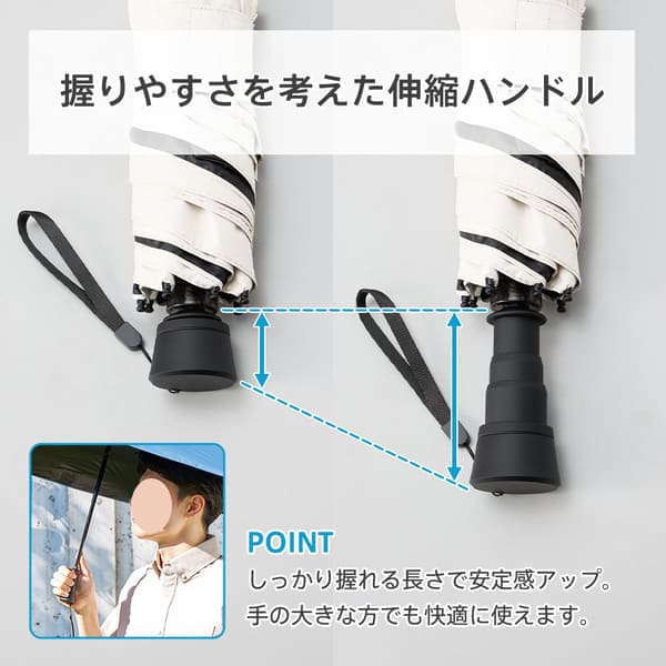 伸縮式ハンドルを採用した、使いやすい遮光タイプの折りたたみ傘です。