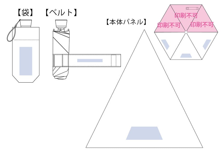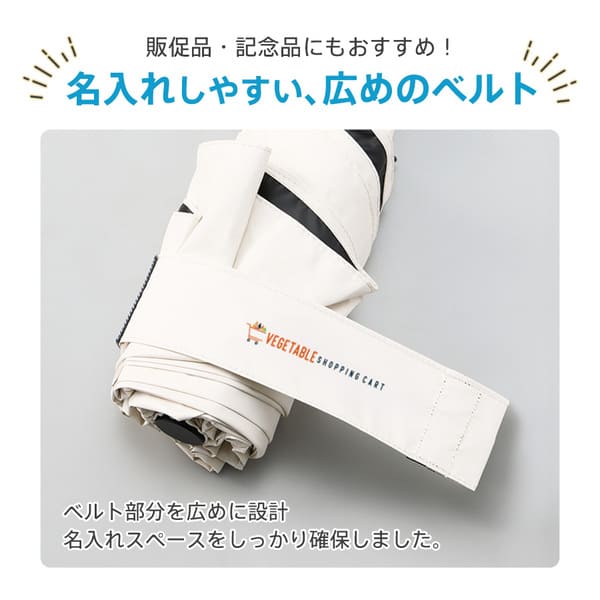 傘袋・ベルト・傘パネルに名入れができ、フルカラー印刷にも対応したノベルティや販促品におすすめのアイテムです。