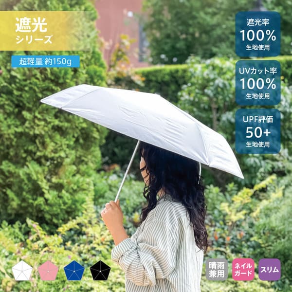 約150gの超軽量設計で持ち運びに便利な遮光折りたたみ傘です。