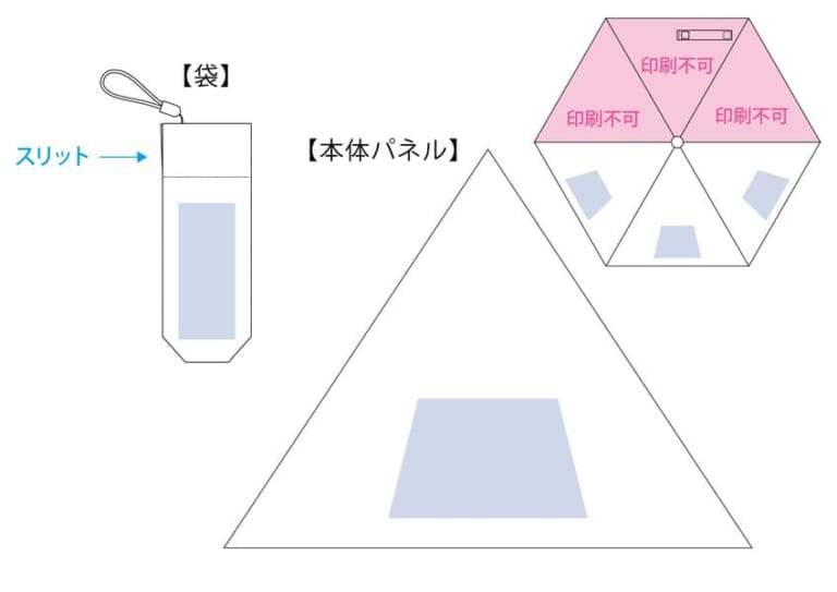 傘袋と本体パネルには名入れができ、化粧品・アパレルブランドのノベルティや、
