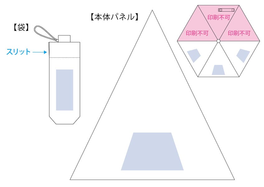 傘袋や本体パネルへの名入れが可能で、オリジナルグッズ制作にも適しています。