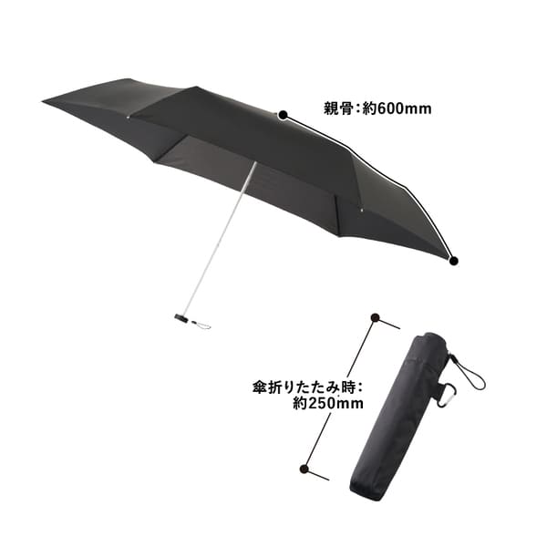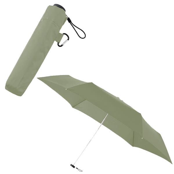傘袋にはカラビナが付いており、バッグやリュックに取り付けてスマートに携帯可能。
