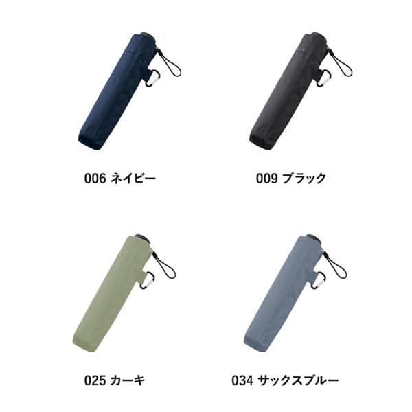落ち着いたカラー展開で、ノベルティやオリジナルグッズにもおすすめの折りたたみ傘です。