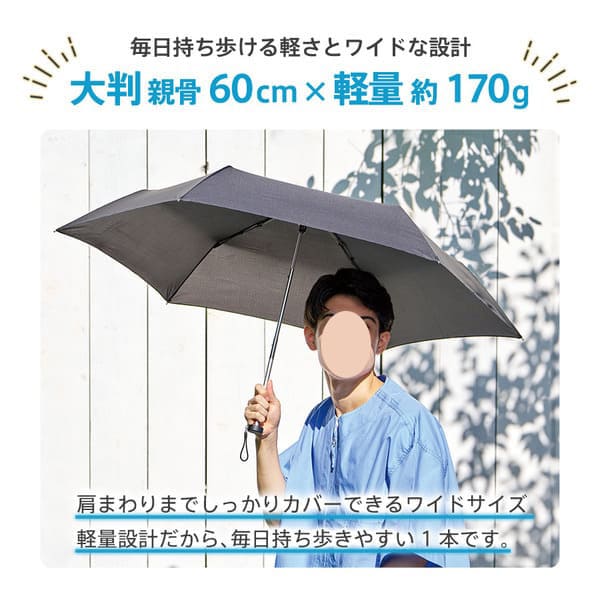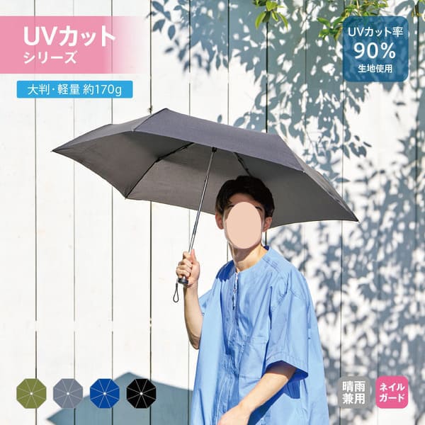 大判サイズでしっかり日差しをカバーする、軽量タイプのUV折りたたみ傘です。