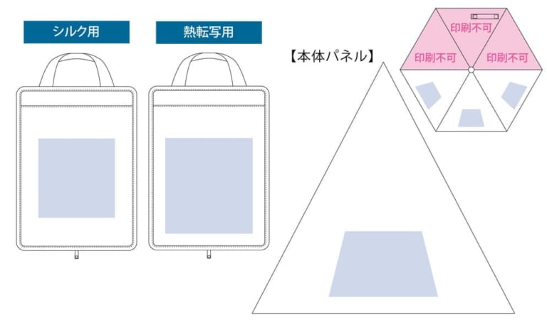 収納ケースと傘パネルには単色・フルカラーで名入れが可能。