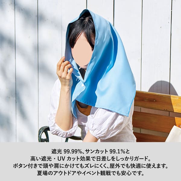 顔まわりはもちろん、首や肩までしっかり覆える高機能UVカットタオルです。