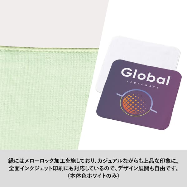 シャーリング加工により、ロゴや名入れが鮮明にプリントできるコットン100%のミニタオルです。