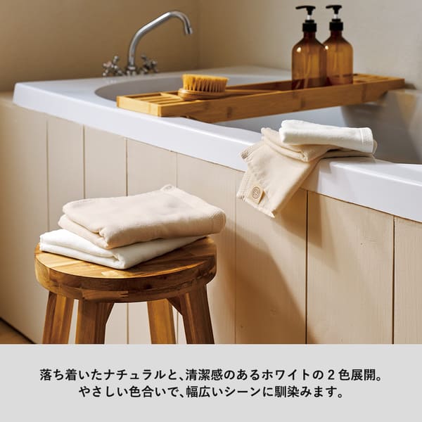 オーガニックコットンを100%使用した、肌ざわりやさしいハンドタオルです。
