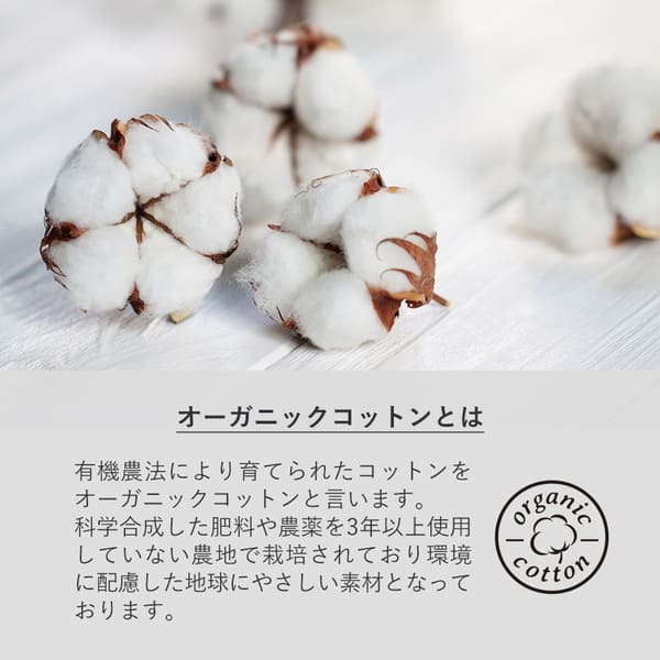 裏面にはオーガニックコットンネーム付きで、安心感とこだわりを演出します。