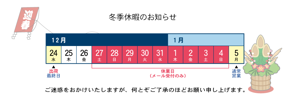 また、商品の最終出荷は12/24(水)になりますので、あらかじめご了承ください。