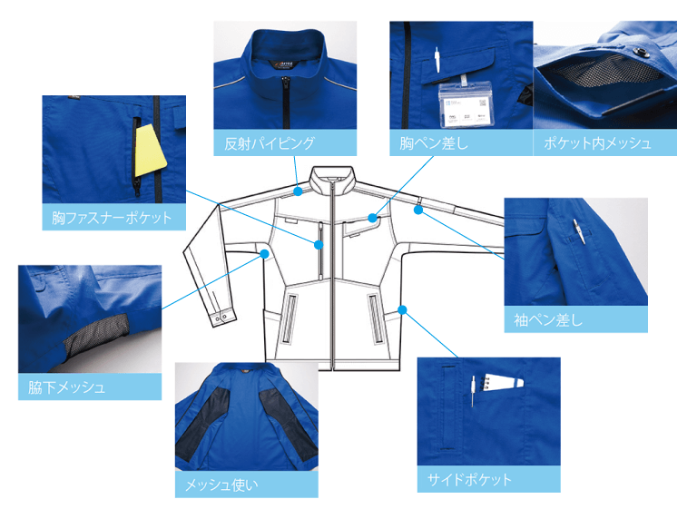 ストレッチT/C素材と、特許構造の3D立体裁縫の合わせ技で運動性能を高め、作業効率をさらにアップできる一枚となっております。