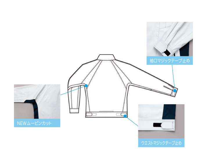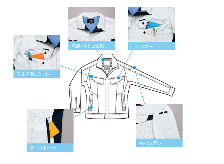 肩周りの運動性能に優れ、ポケットなどの利便性にも優れています。
